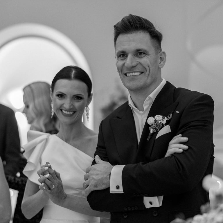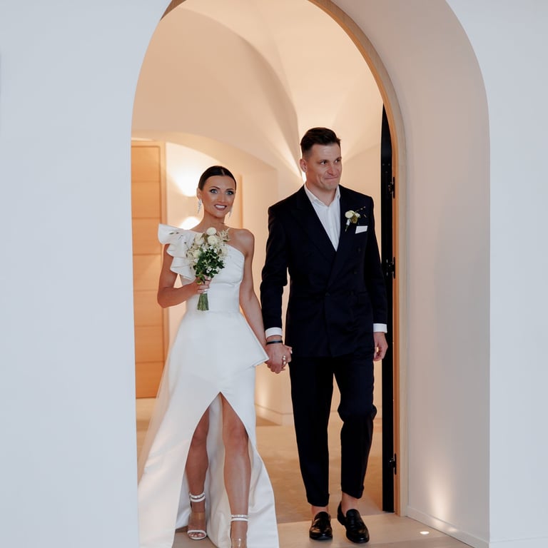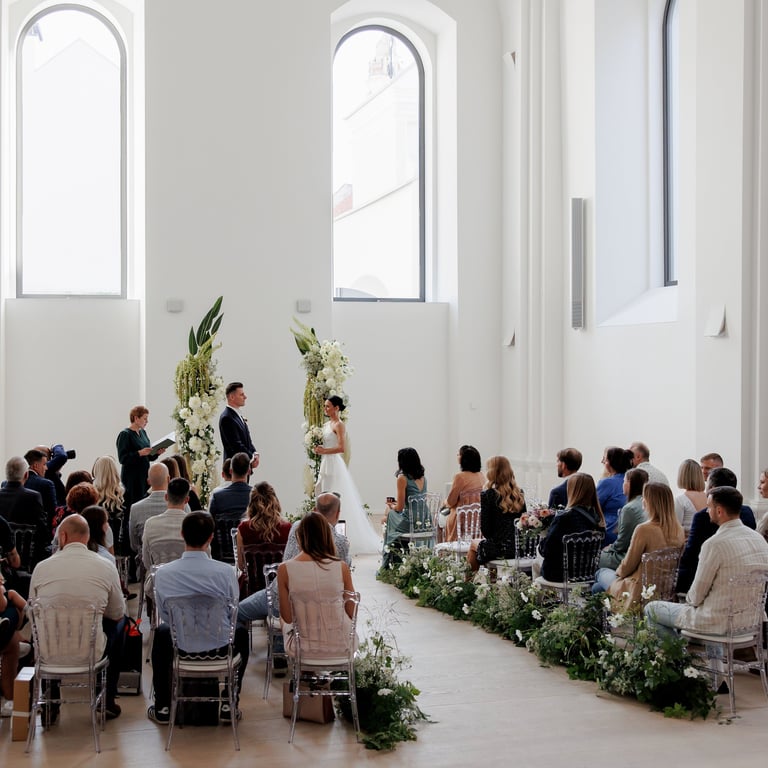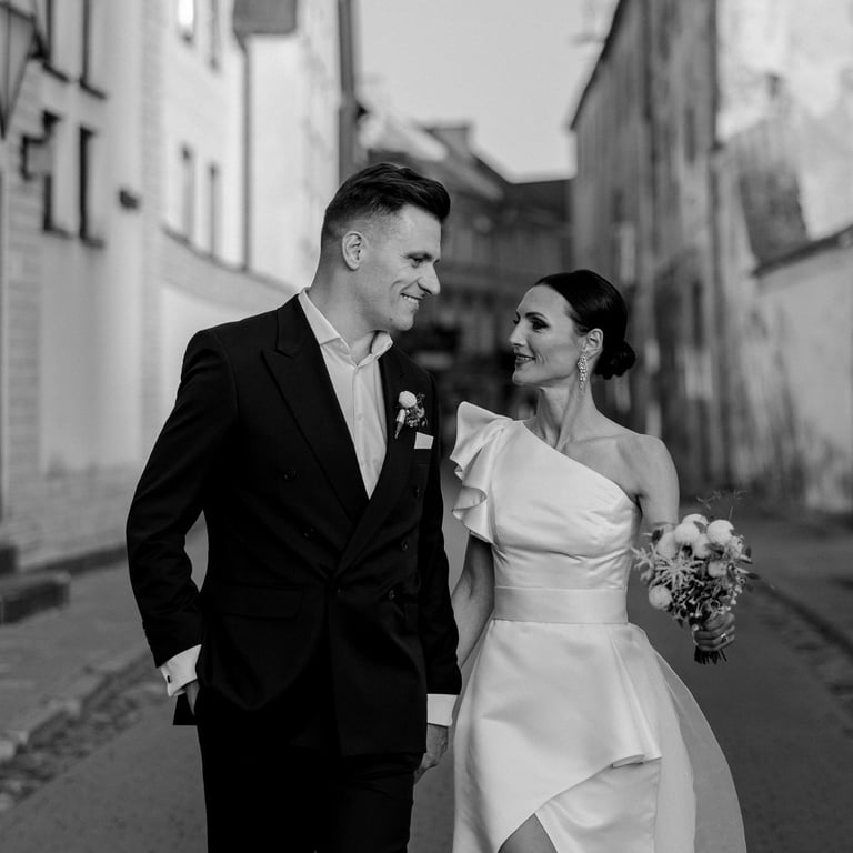 Eglė and Valdas celebrated their warm September wedding in the beautiful old town of Vilnius. The sun was shining brightly, casting a golden glow on the cobblestone streets and ancient buildings. As the couple exchanged their vows in a charming old church, the sound of church bells echoed through the narrow streets, filling the air with a sense of joy and excitement. The streets were adorned with vibrant flowers, adding to the festive atmosphere. It was a day filled with love, laughter, and unforgettable memories, marking the beginning of a beautiful journey for Eglė and Valdas.