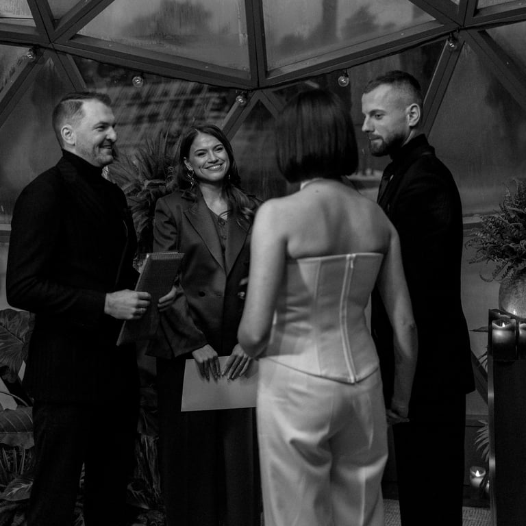 Amidst the vows exchanged and promises made, there was an undeniable magic in the air, as if the universe itself rejoiced in their union. And as they sealed their love with a tender kiss, the world seemed to stand still, enveloped in the warmth of their embrace.